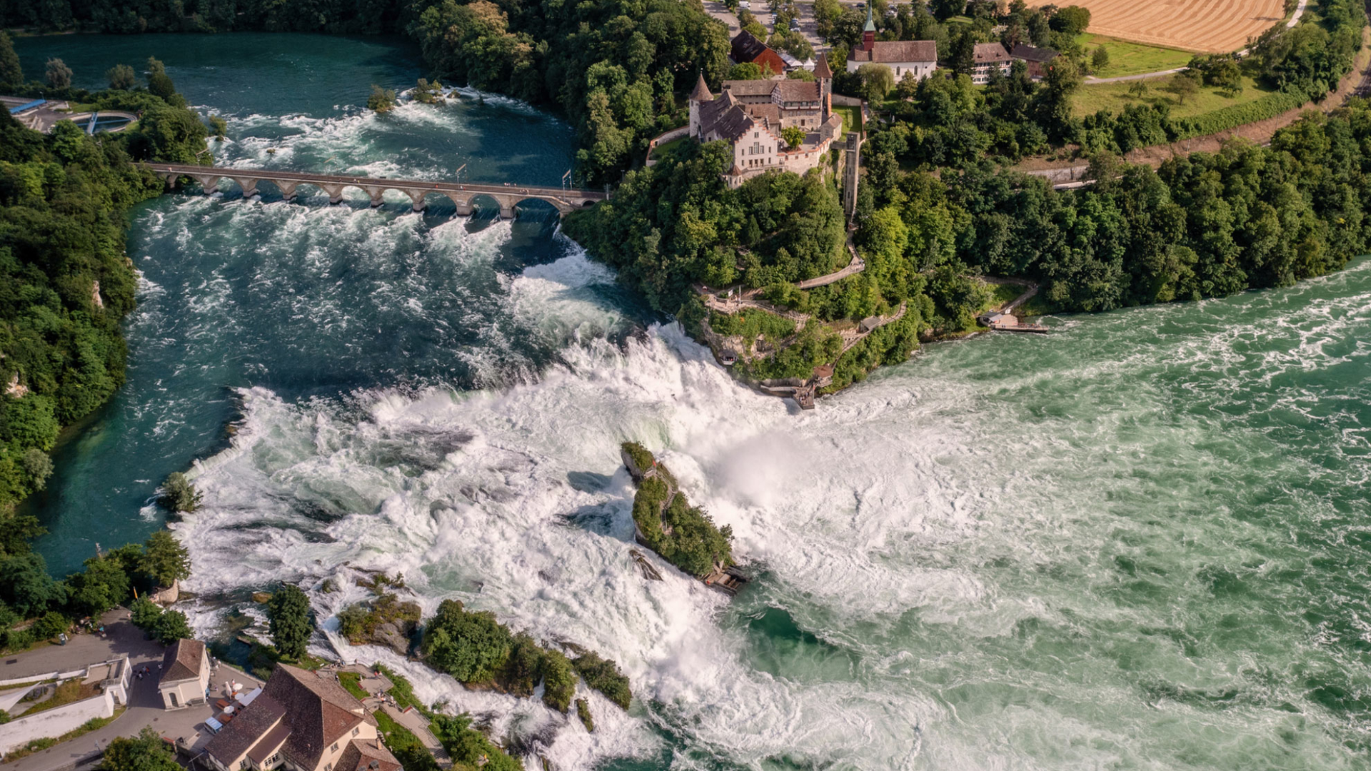 Der größte Wasserfall Europas befindet sich bei Schaffhausen. Der größte ist er zwar nicht aufgrund seiner Höhe, da misst er gerade einmal 23 Meter, sondern bezüglich seiner Wassermenge: Im Durchschnitt donnern 400 Kubikmeter Wasser in der Sekunde den Hochrhein hinab. In Spitzenzeiten können es bis zu 1000 Kubikmeter sein. Auch seine Breite ist mit 150 Metern beachtlich.