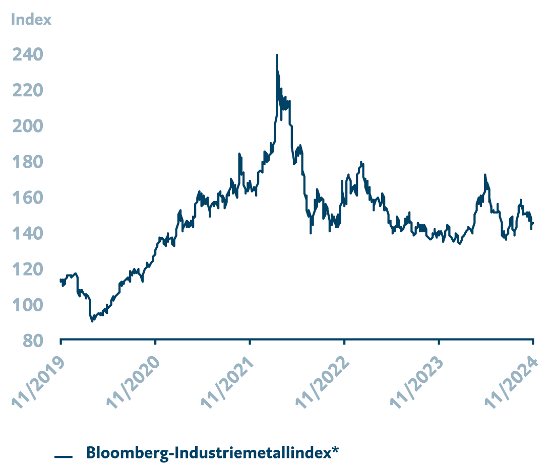 *Der Bloomberg Industrial Metals Subindex beinhaltet die Preisentwicklung der Metalle Kupfer, Aluminium, Zink und Nickel.