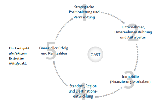 Bei der Kreditentscheidung einer Bank geht es um Vertrauen. Dies spiegelt sich auch im ursprünglichen Wortsinn von Kredit (credere = glauben) wider. Die erfolgreiche Umsetzung eines Konzepts, die effektive Führung und erfolgreiche Vermarktung eines Hauses, der Umgang mit Krisen etc. hängen im Tourismusbetrieb sehr stark von der Persönlichkeit und vom Herzblut des Unternehmers bzw. der Unternehmerfamilie ab. Deshalb ist die Unternehmerpersönlichkeit und deren Fähigkeit, strategisch zu denken und zu handeln sowie die Mitarbeiter und Gäste zu begeistern, von großer Bedeutung.