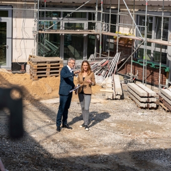 2 Personen stehen auf einer Baustelle und besprechen etwas
