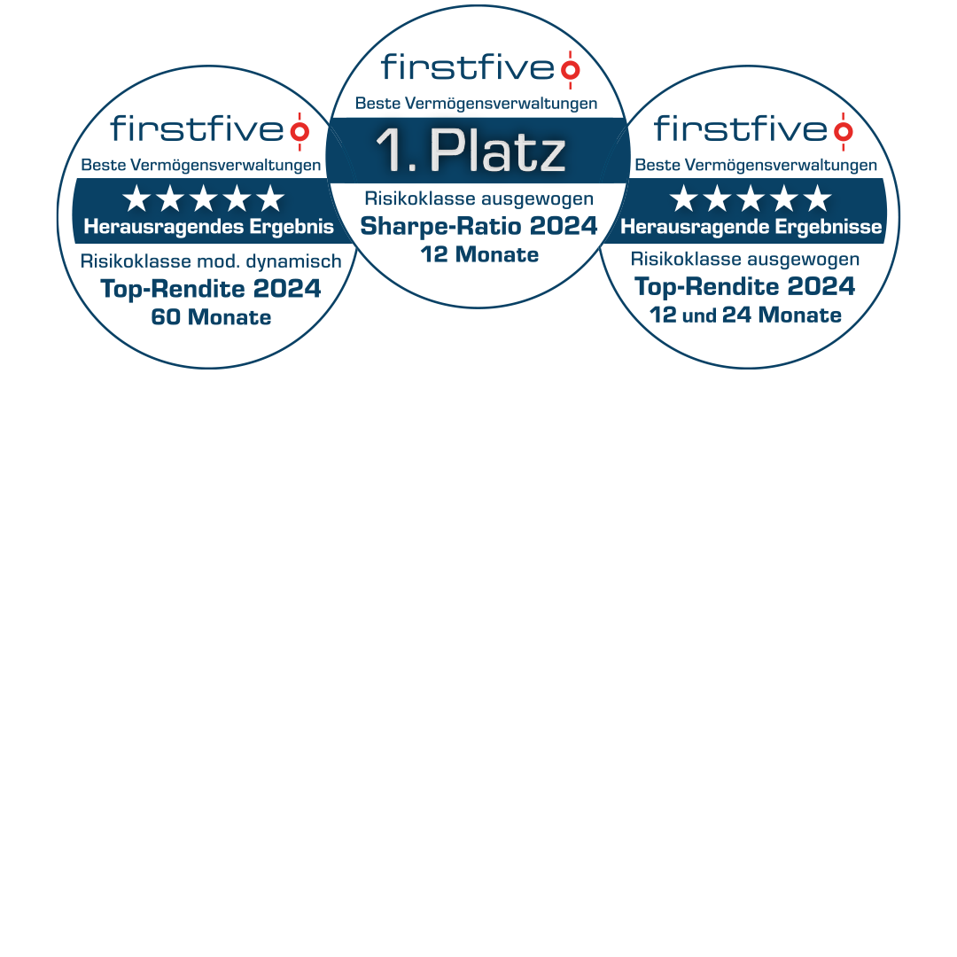 firstfive zeichnete das BTV Asset Management bereits zum 15. Mal in Folge für herausragende Ergebnisse aus. In der Kategorie „Top-Rendite“ wurde das Asset Management in der Risikoklasse „moderat dynamisch“ über den Zeitraum von 60 Monaten und in der Risikoklasse „ausgewogen“ über 12 und 24 Monate mit fünf Sternen (herausragende Ergebnisse) ausgezeichnet. Das Depot muss sich hierfür in der Bewertungskategorie im obersten Fünftel der ausgewerteten Depots innerhalb der Risikoklasse befinden. Ebenso belegt das Asset Management in der Kategorie „Sharpe-Ratio“ in der Risikoklasse ausgewogen über den Zeitraum von 12 Monaten den ersten Platz.