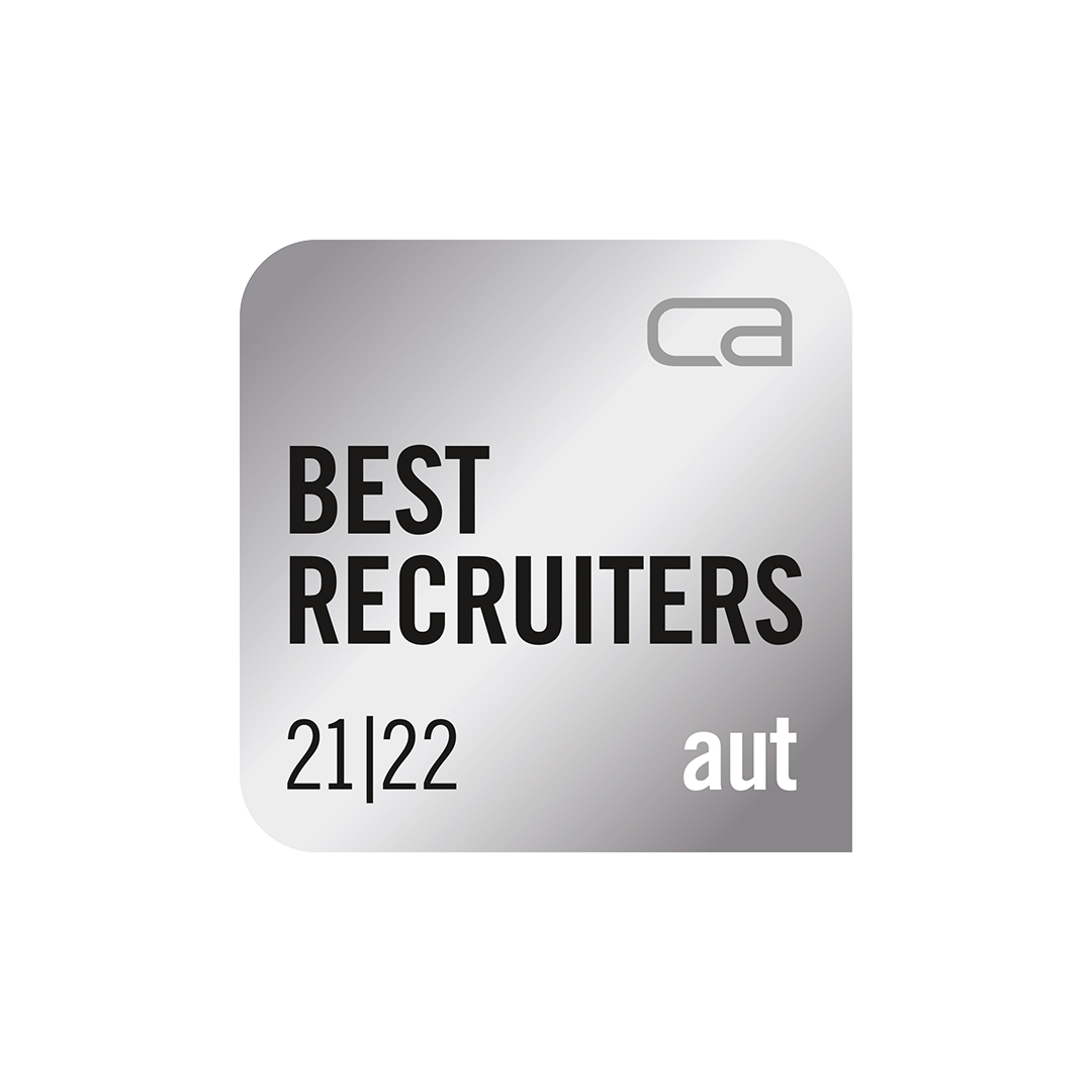 Dieses Jahr wurden wir mit dem BEST RECRUITERS Siegel in Silber ausgezeichnet. Dies ist die Bestätigung für unseren qualitätsvollen und professionellen Bewerbungsprozess. In der Branchenwertung konnten wir heuer Platz 2 belegen und unter insgesamt 556 bewerteten Arbeitgeber*innen sicherten wir uns Platz 31 im Gesamtranking.